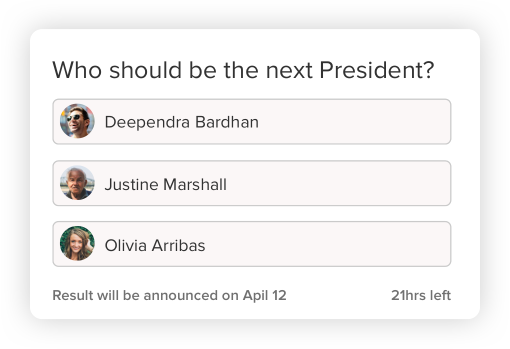Create polls, get peer opinions on issues that matter to you without needing to send out a ton of mails.